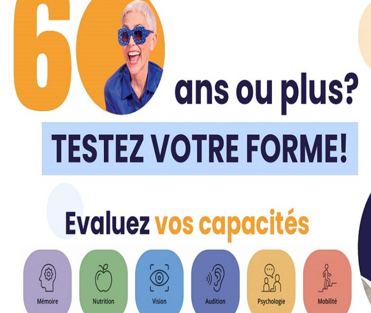 Ce dépistage a pour but le repérage précoce du vieillissement dans 6 domaines (mémoire, nutrition, vision, audition, psychologie et mobilité) et s’adresse aux personnes de 60 ans et plus.